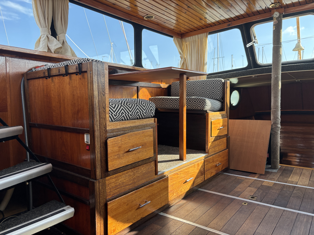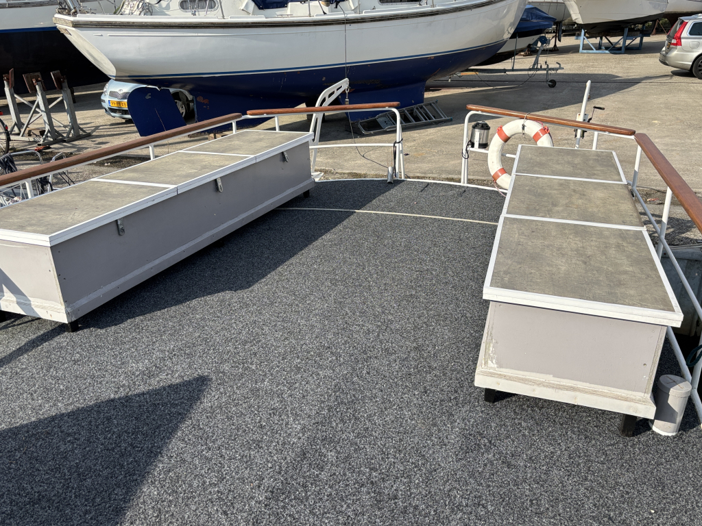 Stalen motorkruiser voorzien van veel ruimte, zowel binnen als op het forse achterdek. Het schip is uitermate geschikt om langere tijd op te verblijven of om op te wonen. In 2022 heeft er groot onderhoud plaatsgevonden, onder andere inbouw badkamer, vuilwatertank, onderwaterschip, antifouling. Een ruim schip met veel mogelijkheden. Kom bezichtigen in onze verkoophaven te Baarn.