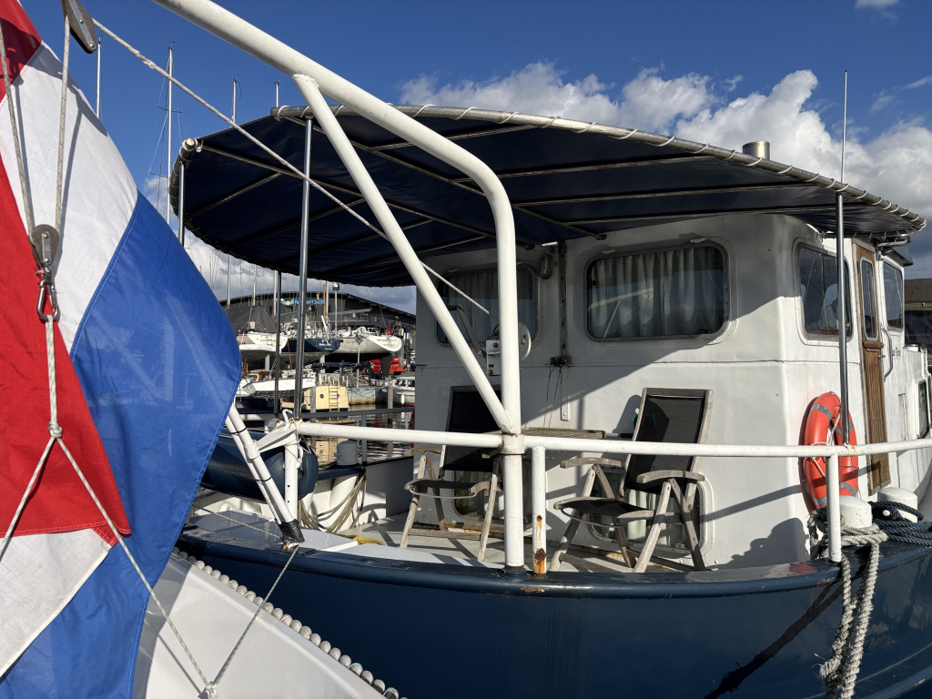 • het schip is zelfvoorzienend met 2 x zonnepaneel op stuurhut dak.