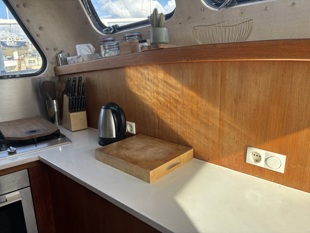 • kooktoestel brandstof:Gas, gasbun voor tweeflessen op het achterdek.