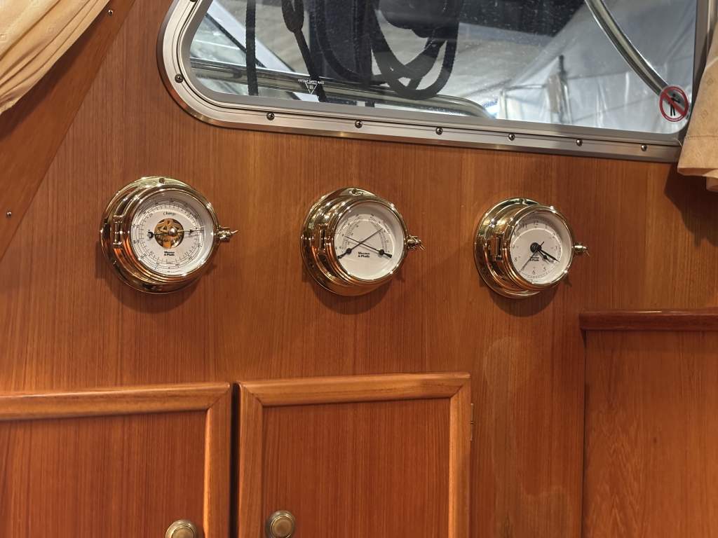 Binnen stuurstand met een goed overzicht, o.a. voorzien van Raymarine Element 7s GPS plotter, AIS-transponder (2023), Nasa log (2024), marifoon Standard Horizon (2023)