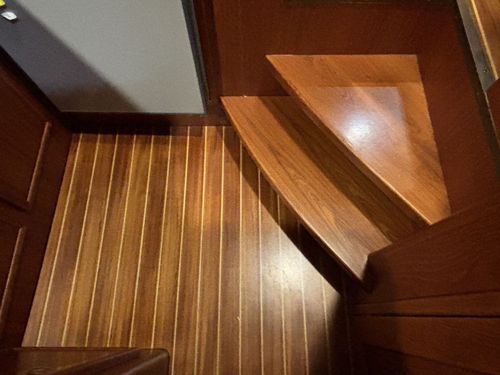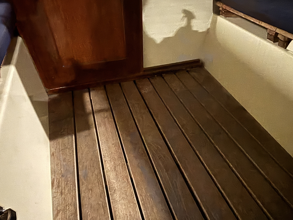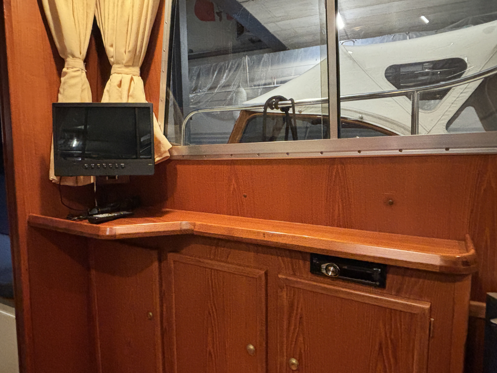 Geheel met teakhout betimmerd en in bijzonder mooie staat.