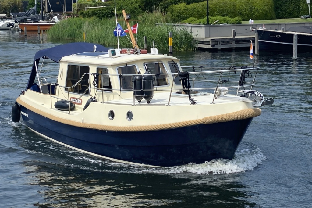 Prachtig gebouwde polyester motorboot met open kuip.Geheel met teakhout betimmerd en in bijzonder mooie staat.Veel opbergruimte.Binnen en buitenstuurstandAf