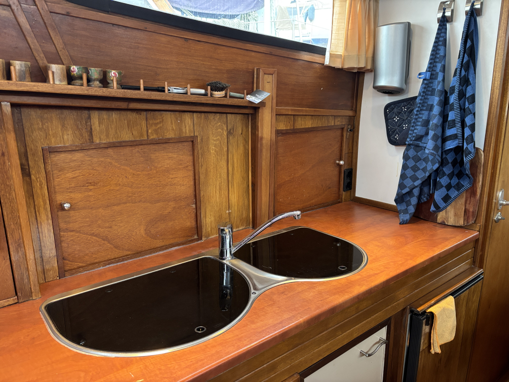 - Goede stahoogte door het gehele schip: kombuis 2.00 meter, stuurhuis 1.90/2.00 meter, achterkajuit 1.80 meter