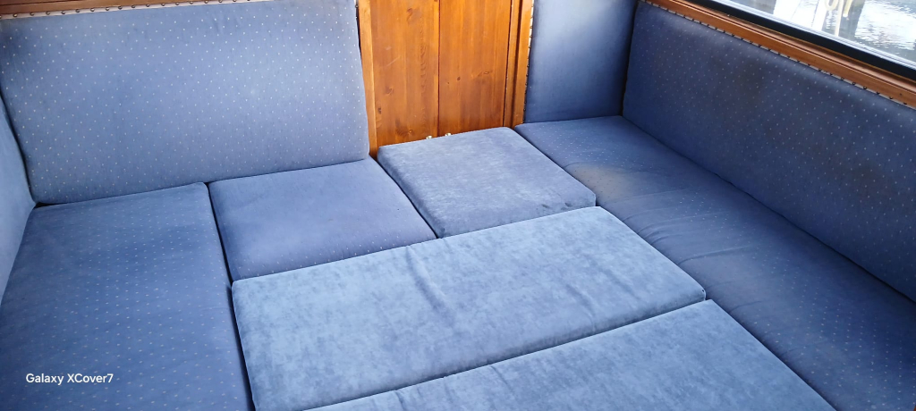 - Ruime voorkajuit met extra lang aanrecht, gezellige L zit eettafel.